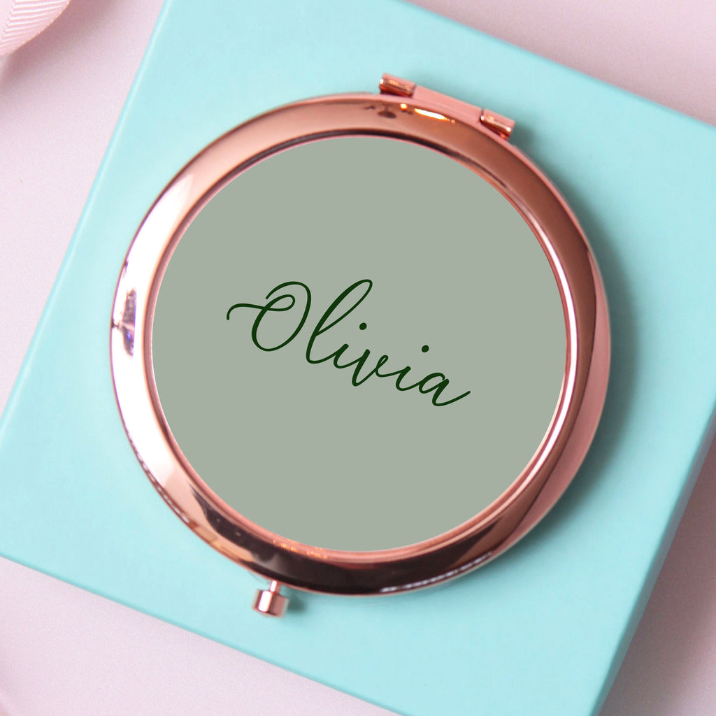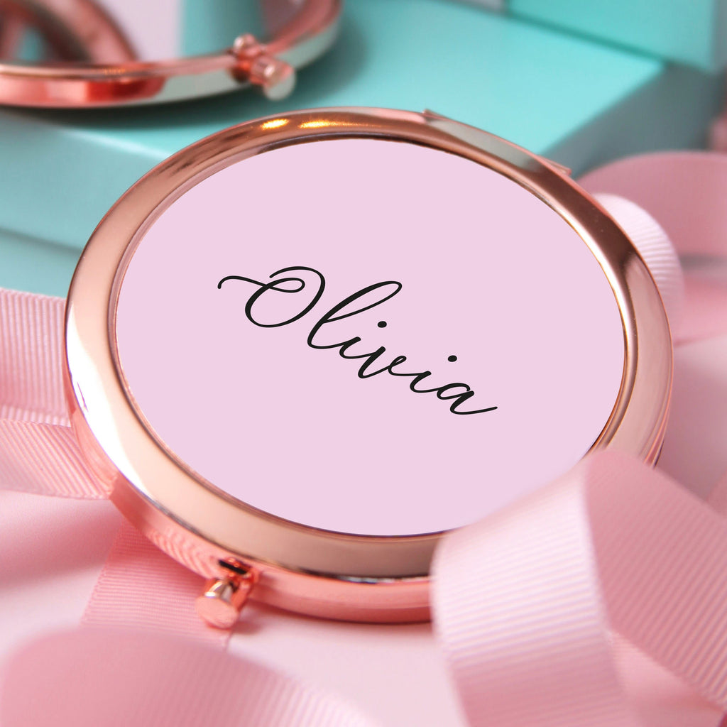 Rose Gold Mirror - Personalised Compact Mirror with Custom Name | Bridesmaid Gift Idea