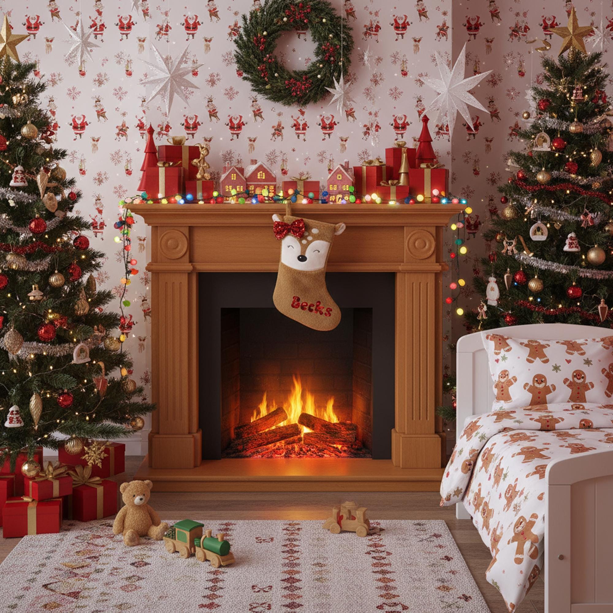This reindeer Christmas stocking is ideal for delighting little ones with its playful design, making it the perfect personalised kids stocking to brighten any holiday setting. Whether you hang it on the mantel or use it as part of your Christmas stocking decoration ensemble, its festive appeal stands out.