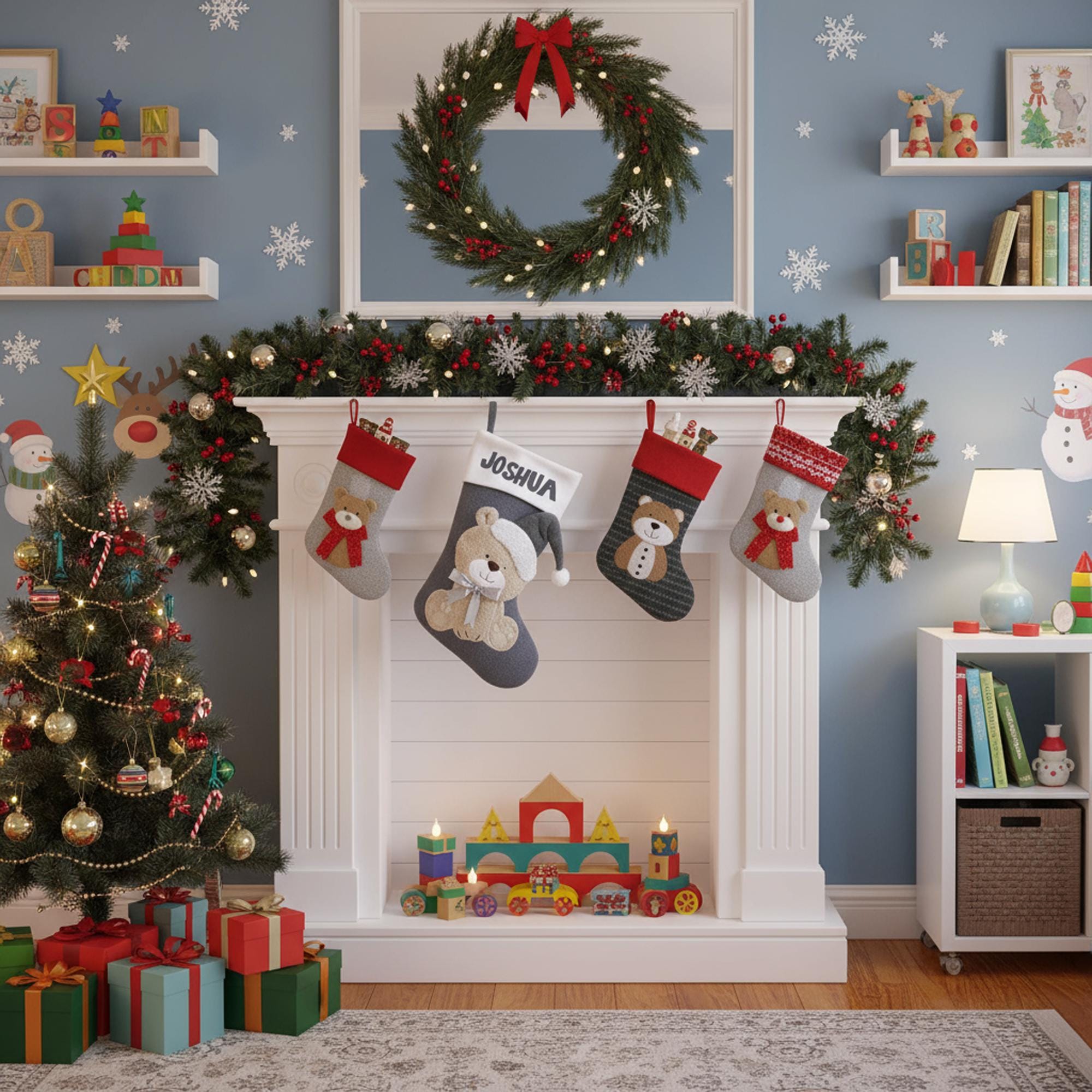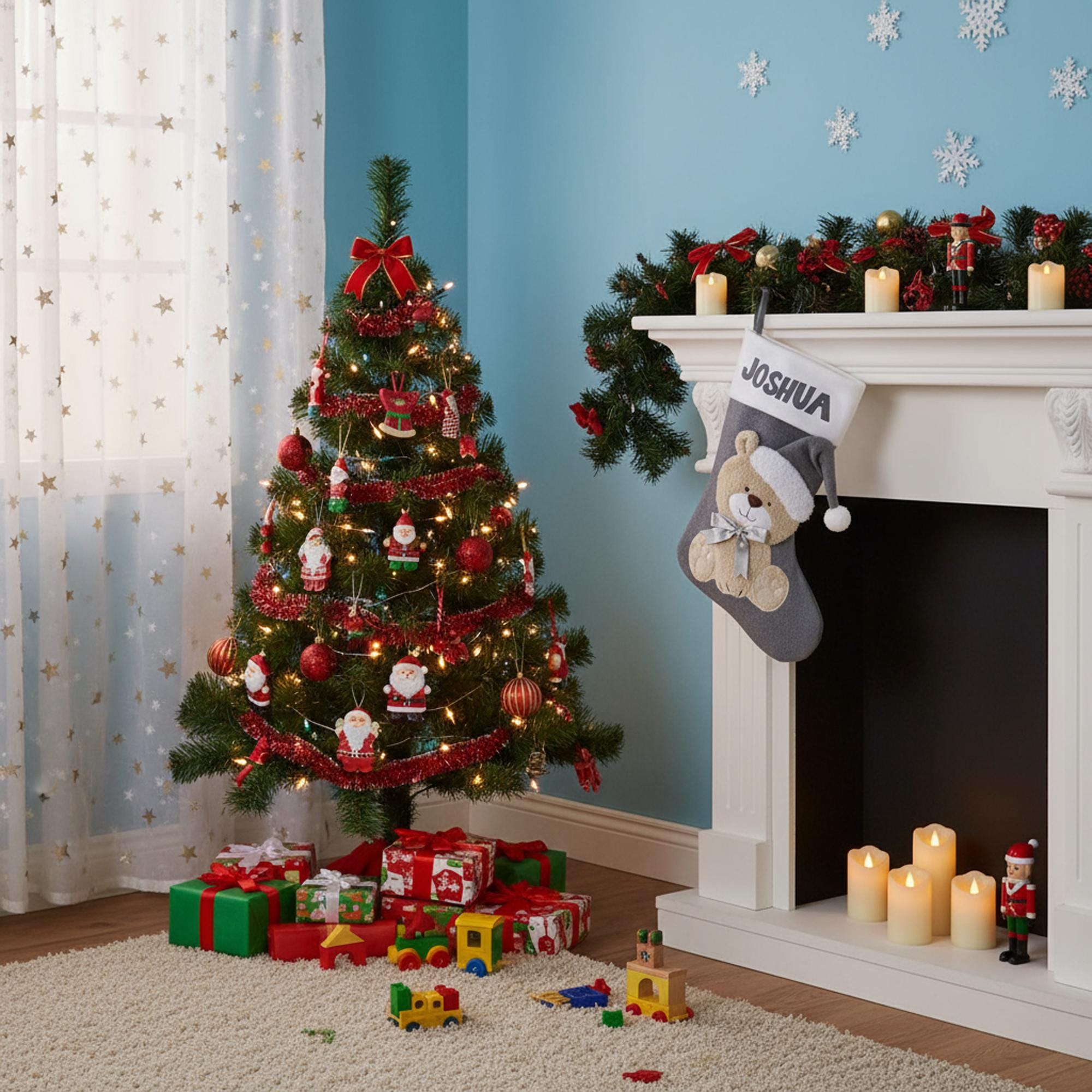 - Plush teddy bear Christmas design → creates a warm, festive atmosphere