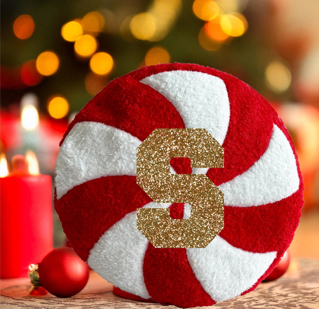 Christmas Candy Cane Cushion - Personalised Plush Holiday Home Decor With Glitter Letter