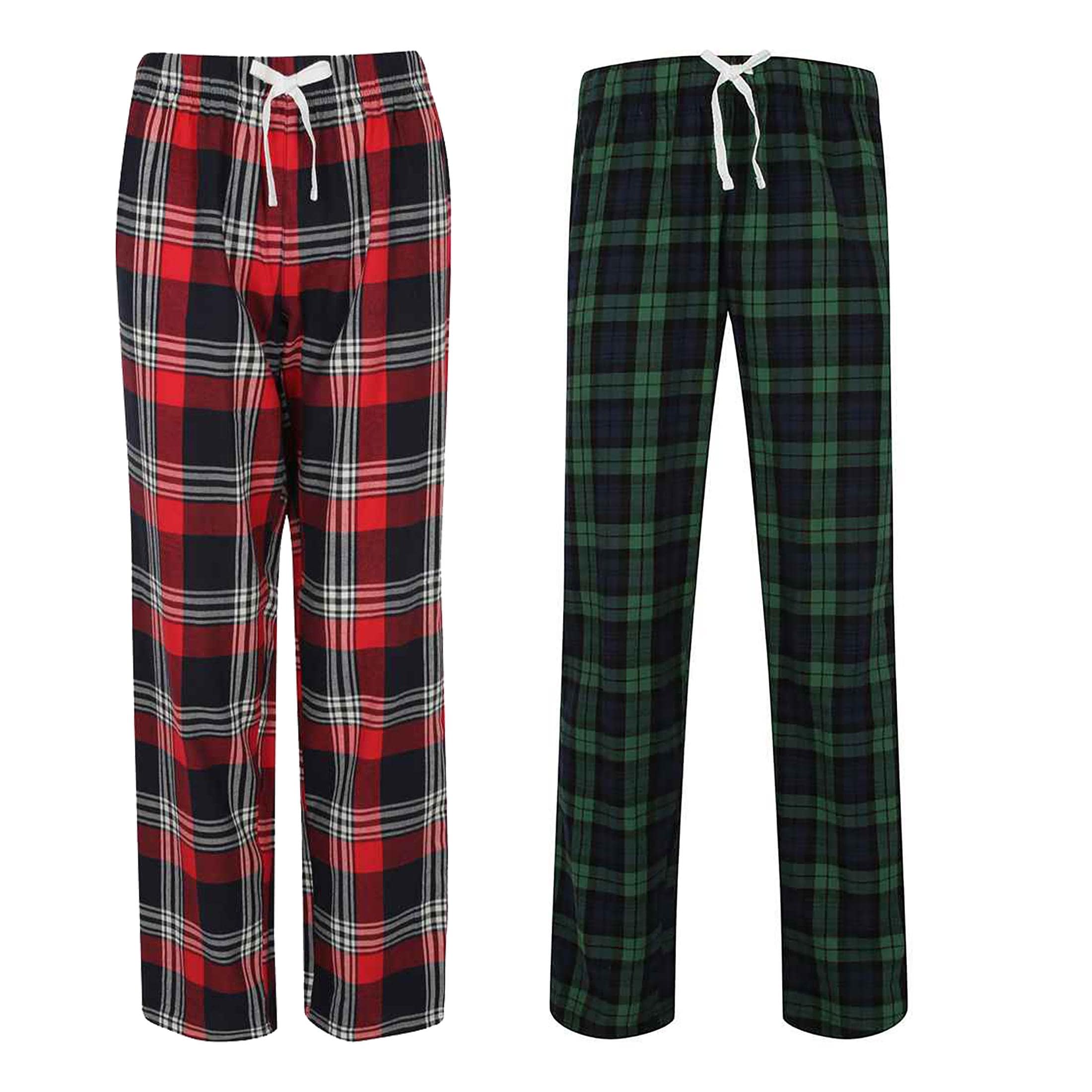 Matching Couples Pajamas - Green Tartan Cotton Flannel PJs With Slim Fit Bottoms
