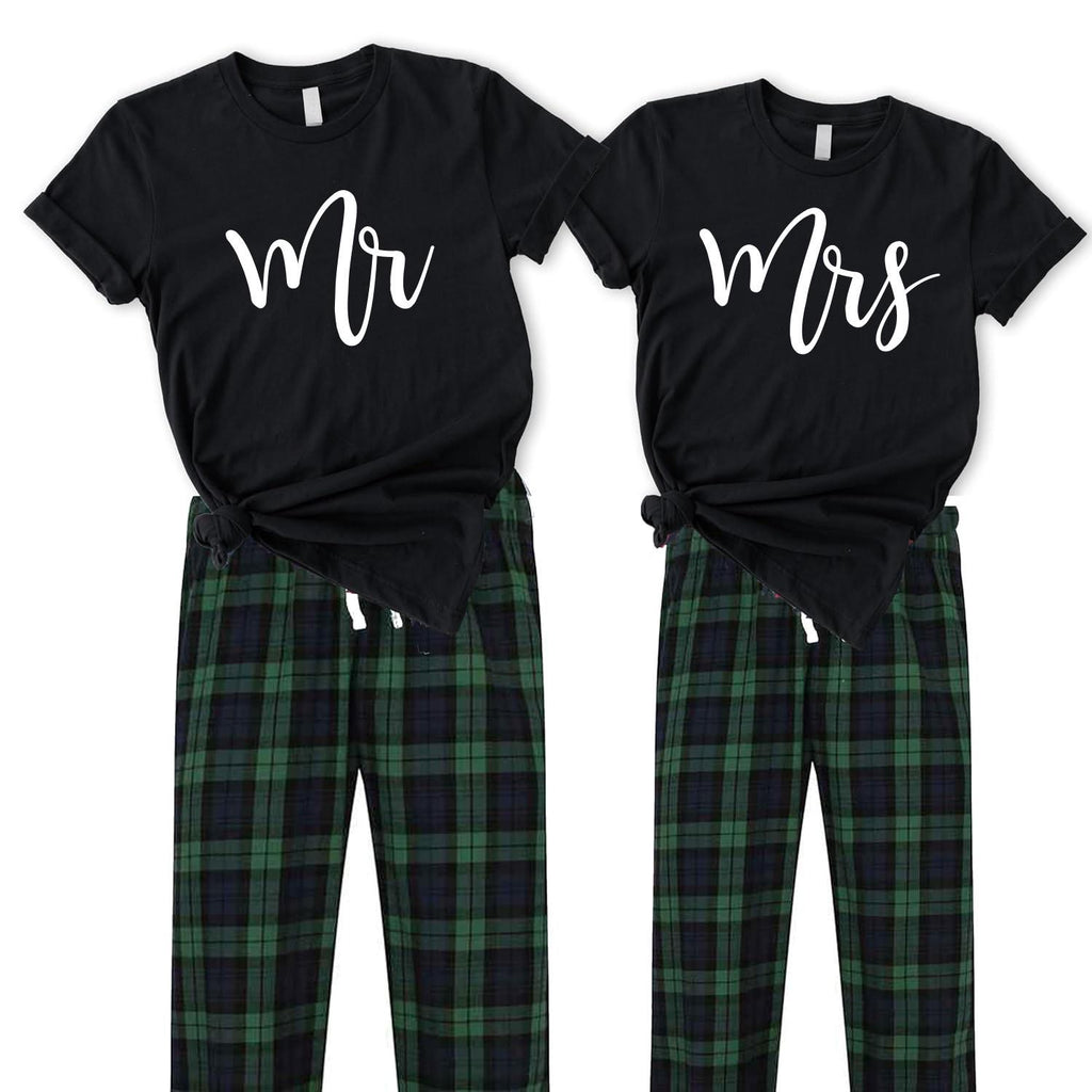 Matching Couples Pajamas - Green Tartan Cotton Flannel PJs With Slim Fit Bottoms