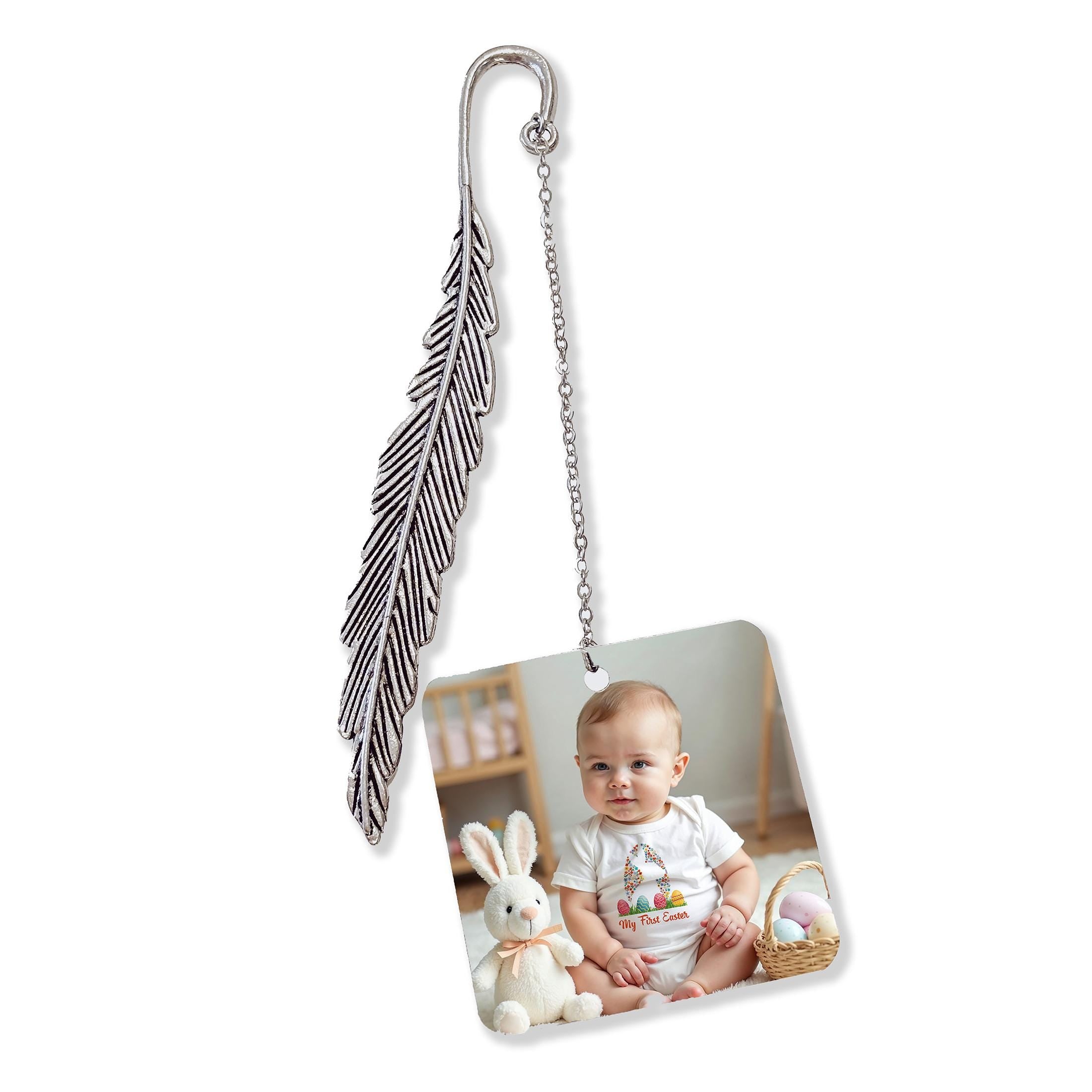 This personalised photo bookmark is a stunning metal feather bookmark designed to combine elegance with practicality for book lovers. Crafted from durable metal, this silver metal bookmark features a delicate feather-shaped design that fits perfectly in any book, making it an ideal custom photo gift. The personalised photo bookmark allows you to add a cherished image, turning it into a meaningful photo gift for Mum or a unique grandma bookmark that will be treasured for years.