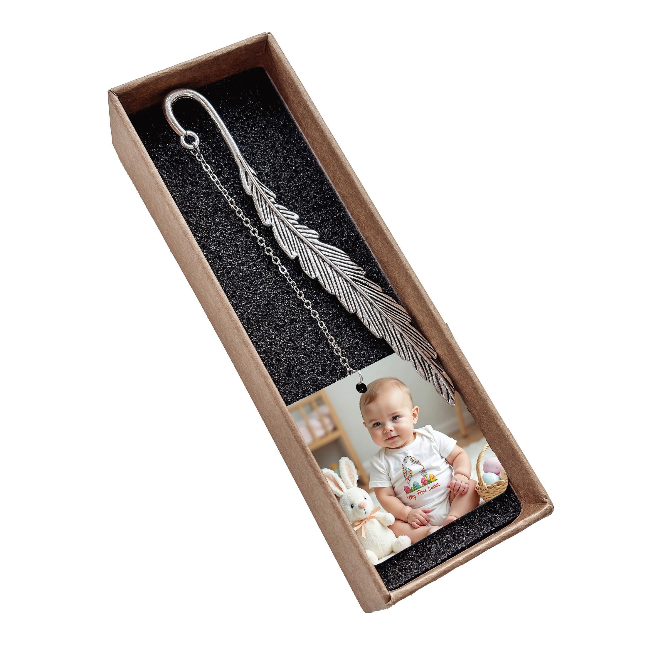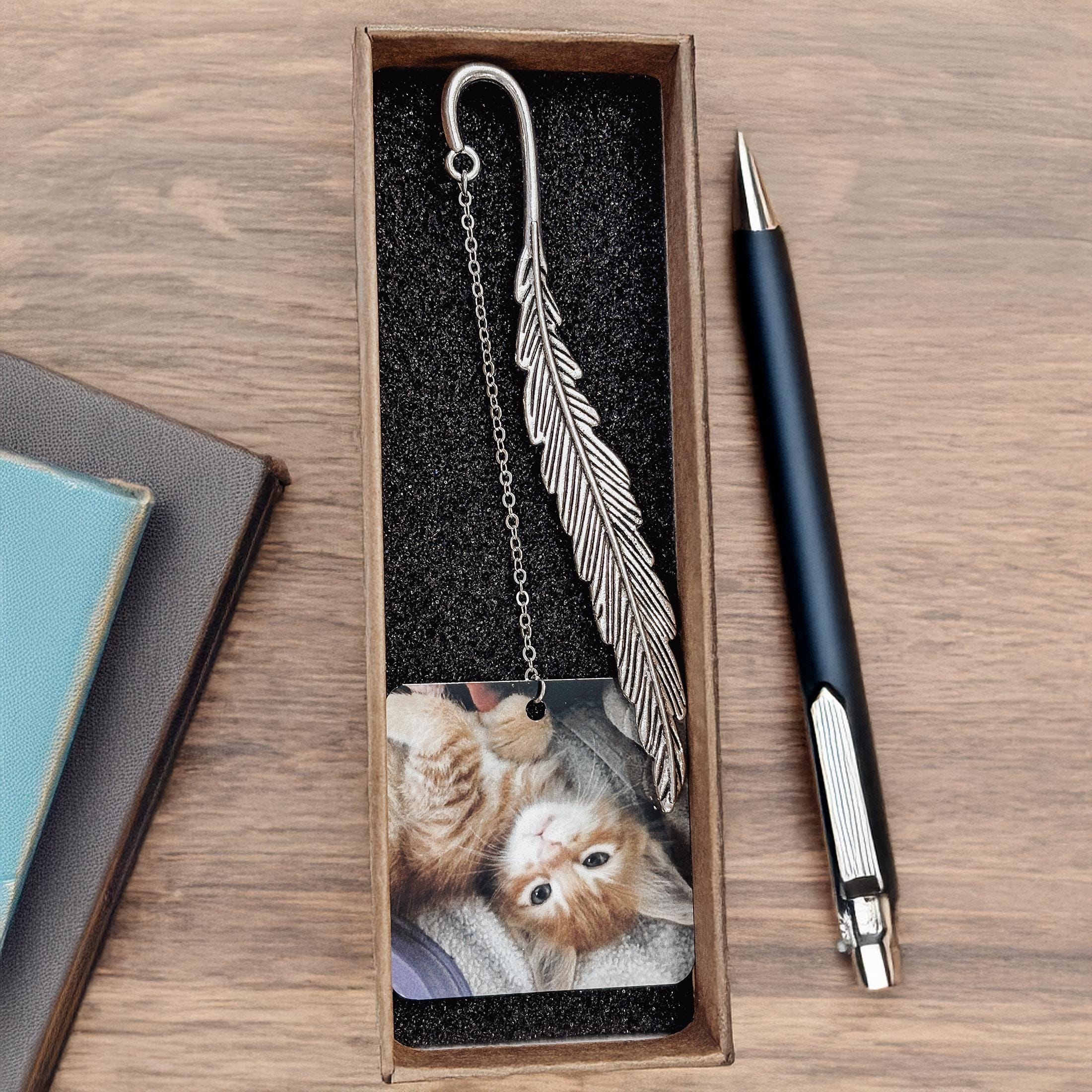 Personalised Photo Bookmark - Metal Feather Bookmark in Gift Box | Custom Photo Gift