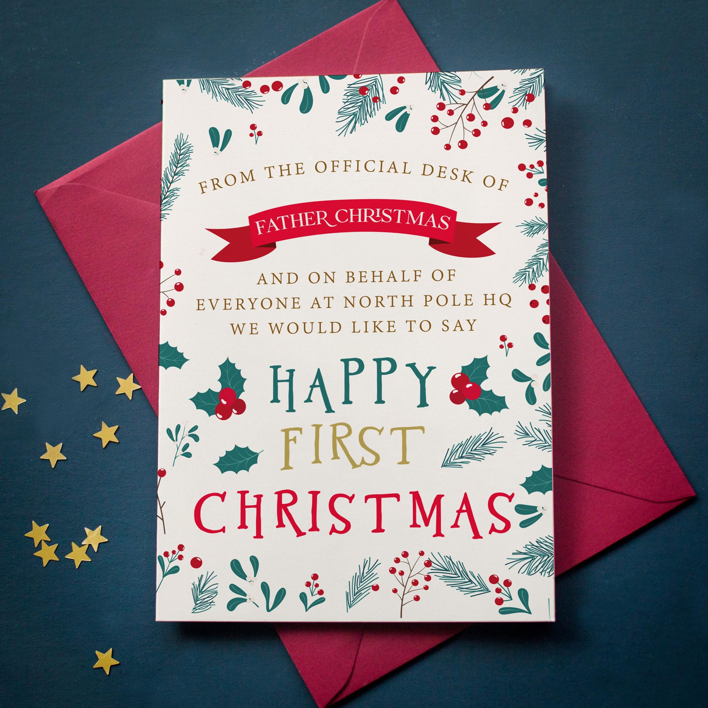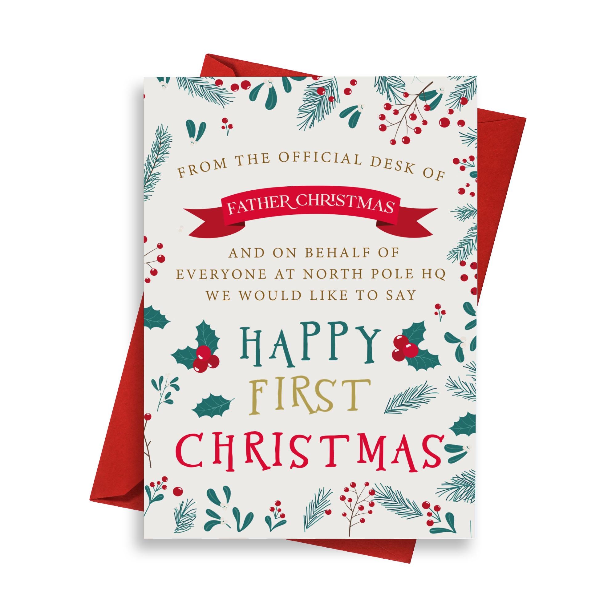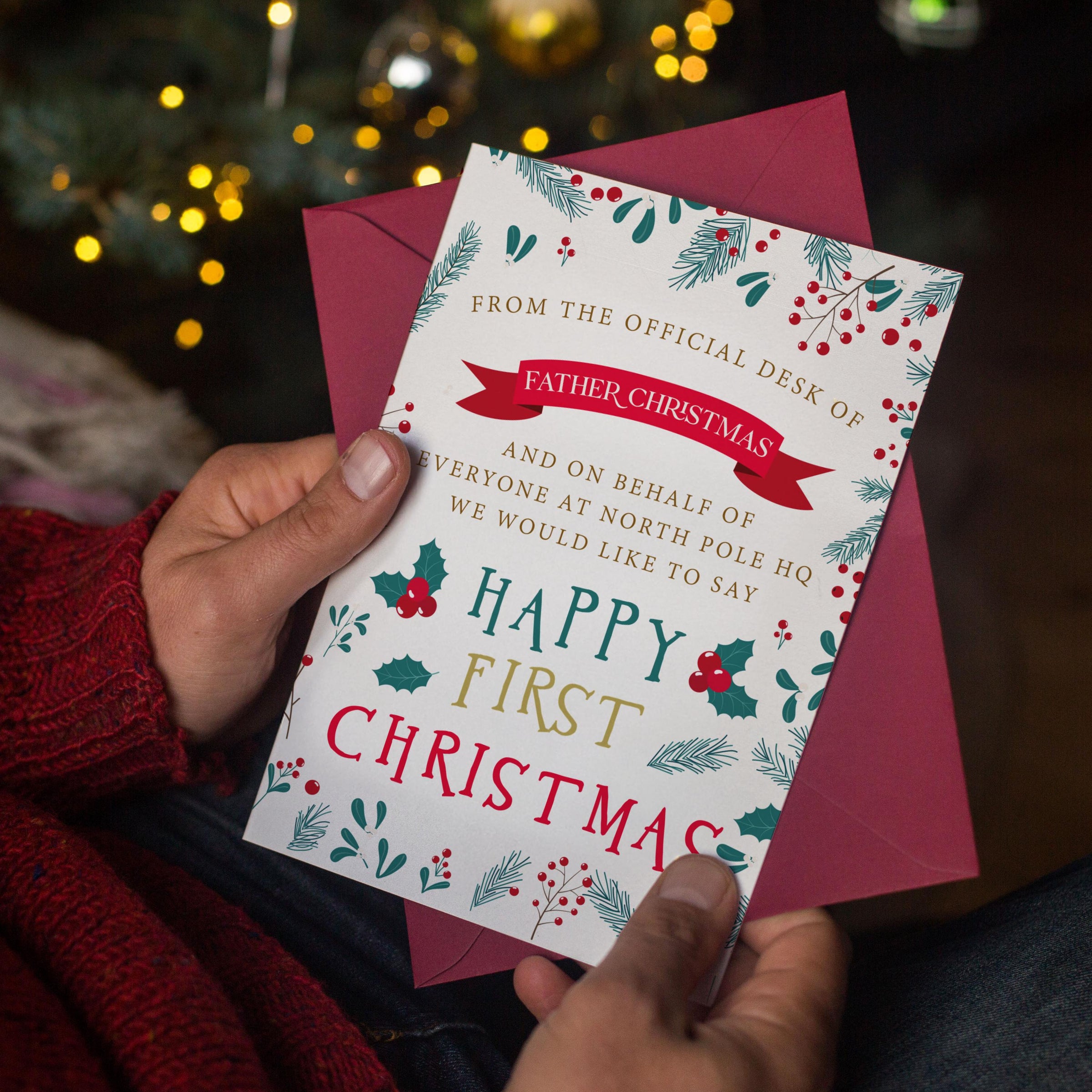 Celebrate your little one's milestone with this baby first Christmas card, designed to make your baby's first holiday truly unforgettable. This personalised baby card features a festive design and a heartfelt letter from Santa, perfect for welcoming your newborn's first Christmas with warmth and magic. Crafted as an A5 Christmas card, it offers ample space for you to add your baby's name and a personal message at home, turning it into a treasured keepsake Christmas card that families will cherish for years.