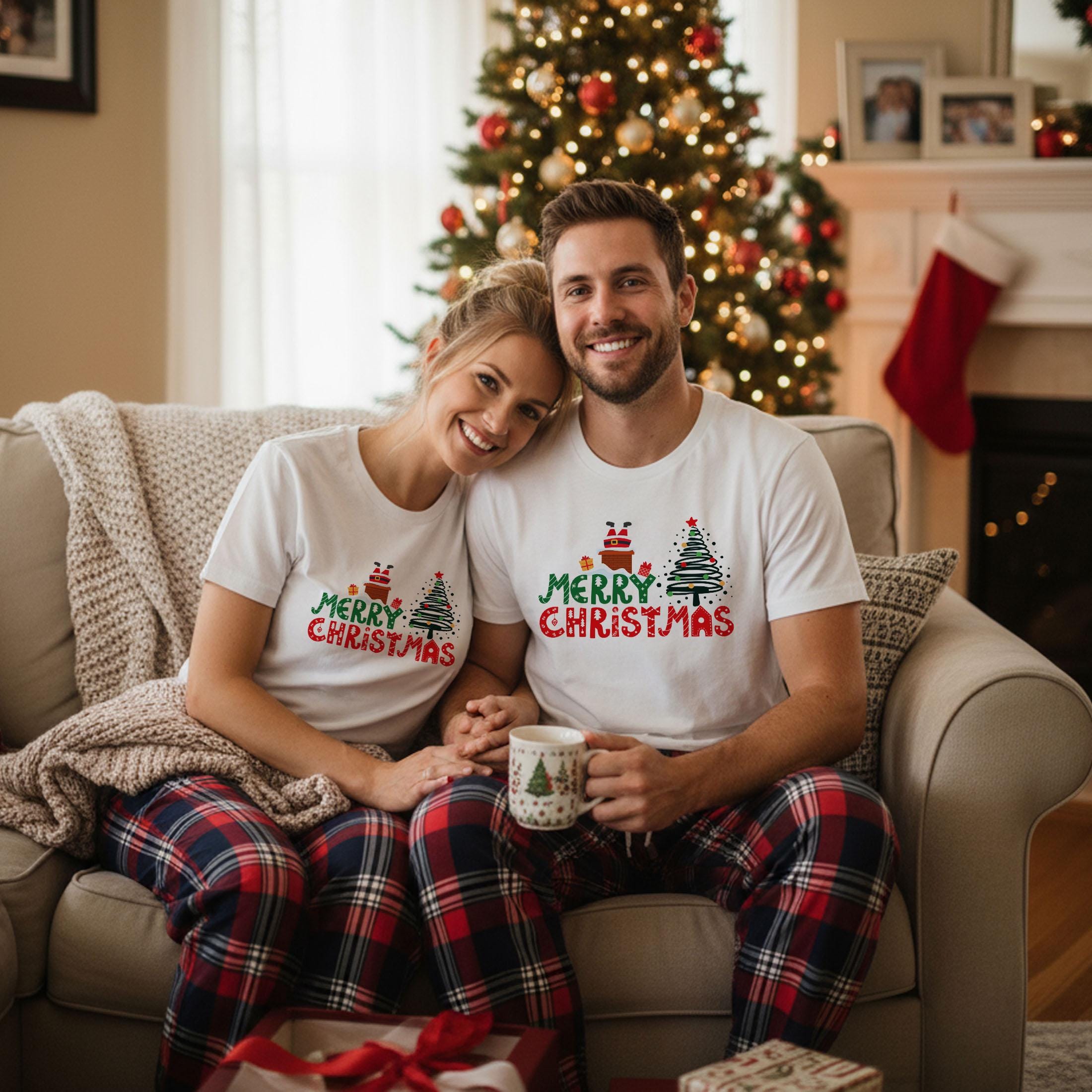 Our matching Christmas pyjamas bring festive cheer and cozy comfort to your family celebrations. Designed for the whole family, these family Christmas pajamas create a joyful holiday atmosphere while ensuring everyone stays warm and relaxed. Crafted from soft cotton flannel bottoms with elasticated waistbands and Airlume cotton unisex T-shirts, these Christmas PJs for couples, kids Christmas pyjamas, and adults deliver comfort and style in every size.