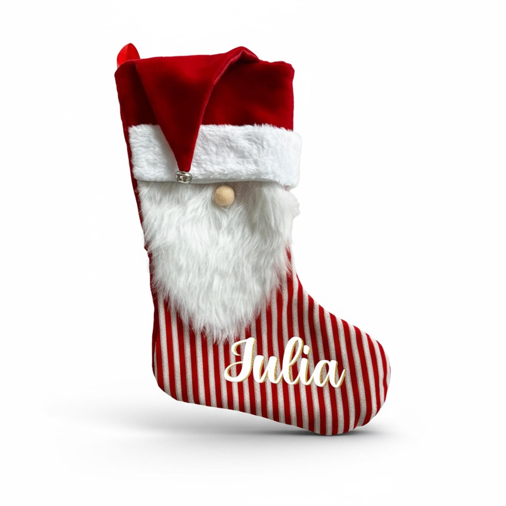 Personalized Christmas Stocking – Plush Gnome Shaped Kids Holiday Decor