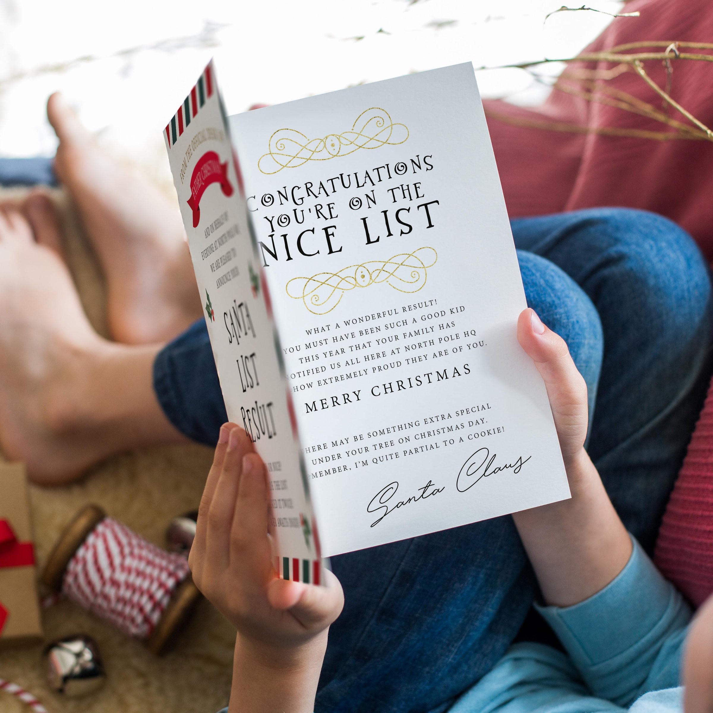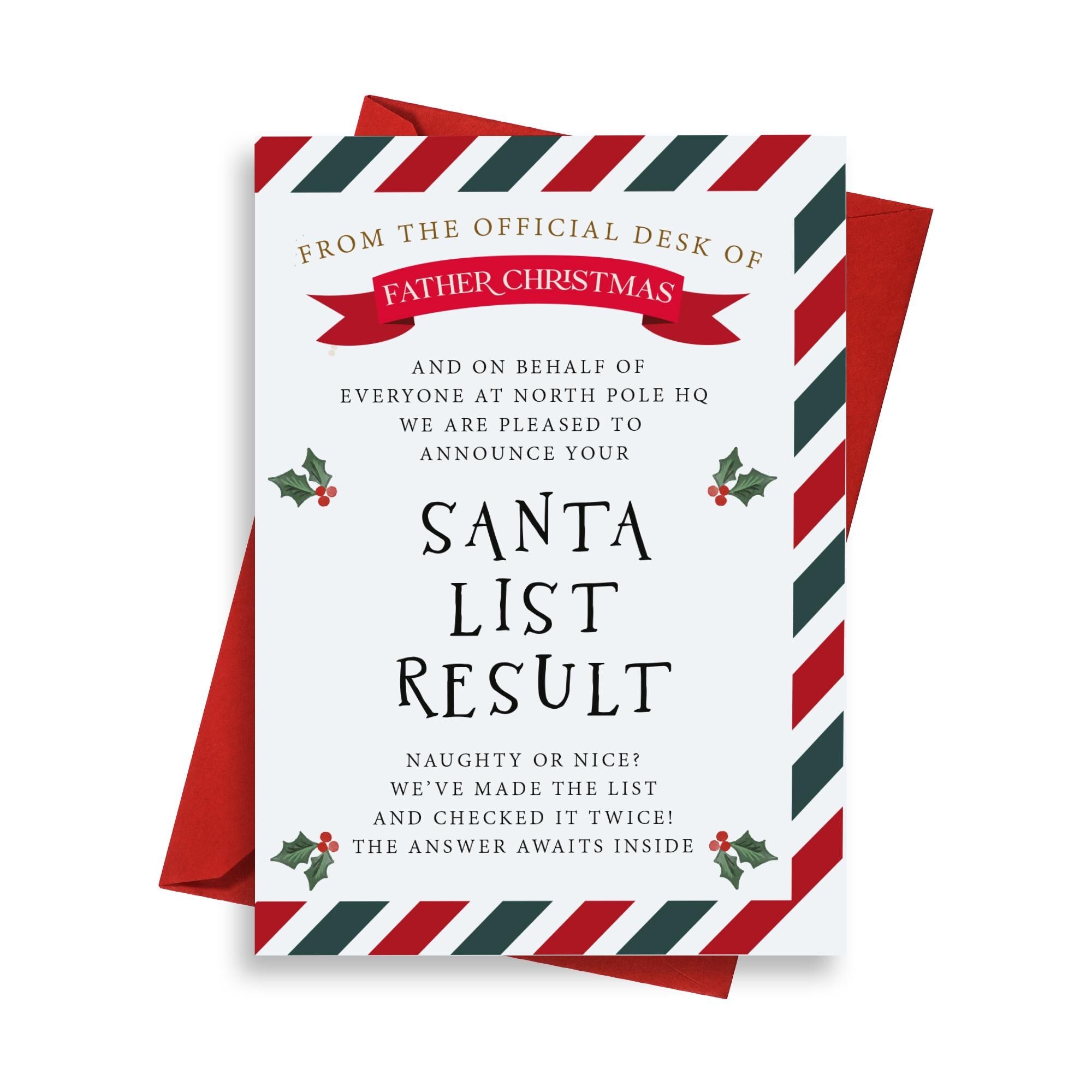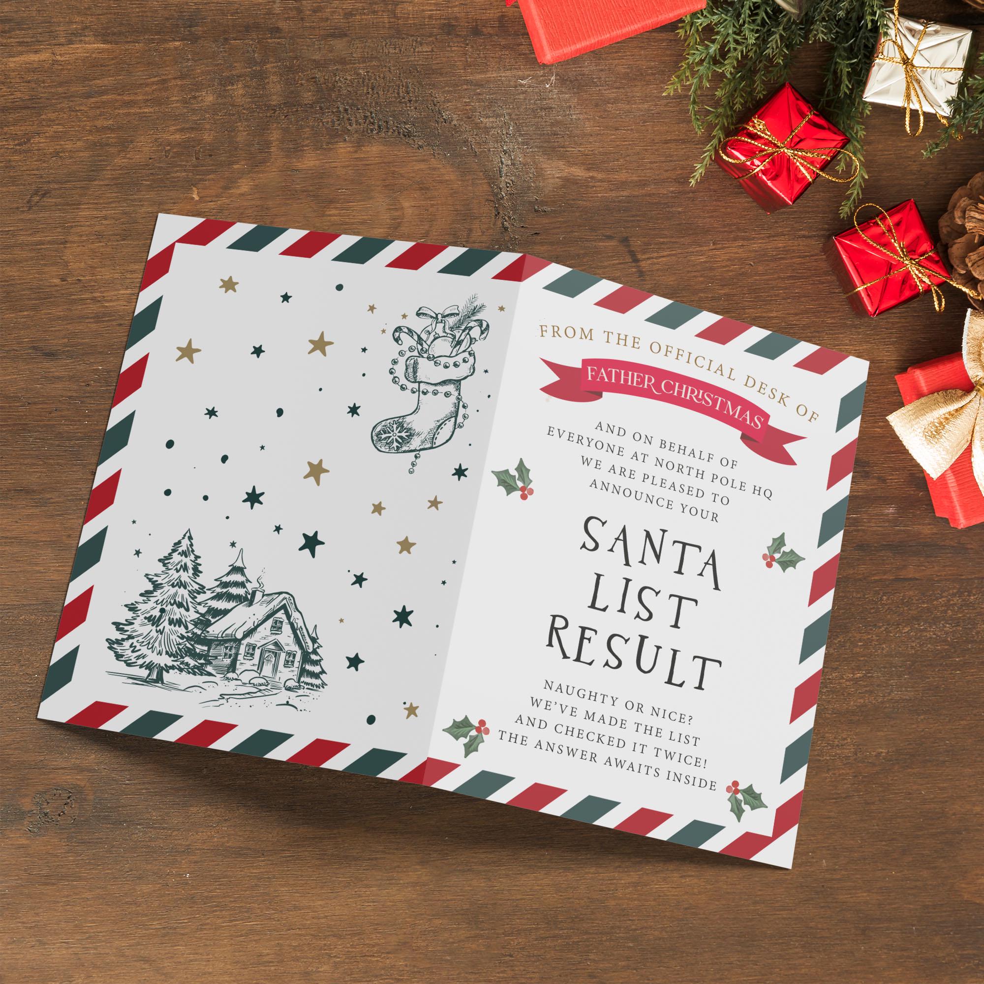 This Santa list result card combines enchanting design with heartfelt messaging, creating a magical moment that children will cherish year after year. Tested by hundreds of families, our cards receive glowing reviews for sparking joy and wonder during the holiday season. Whether used as a standalone gift or part of your Christmas Eve celebrations, this kids Christmas letter delivers genuine delight.