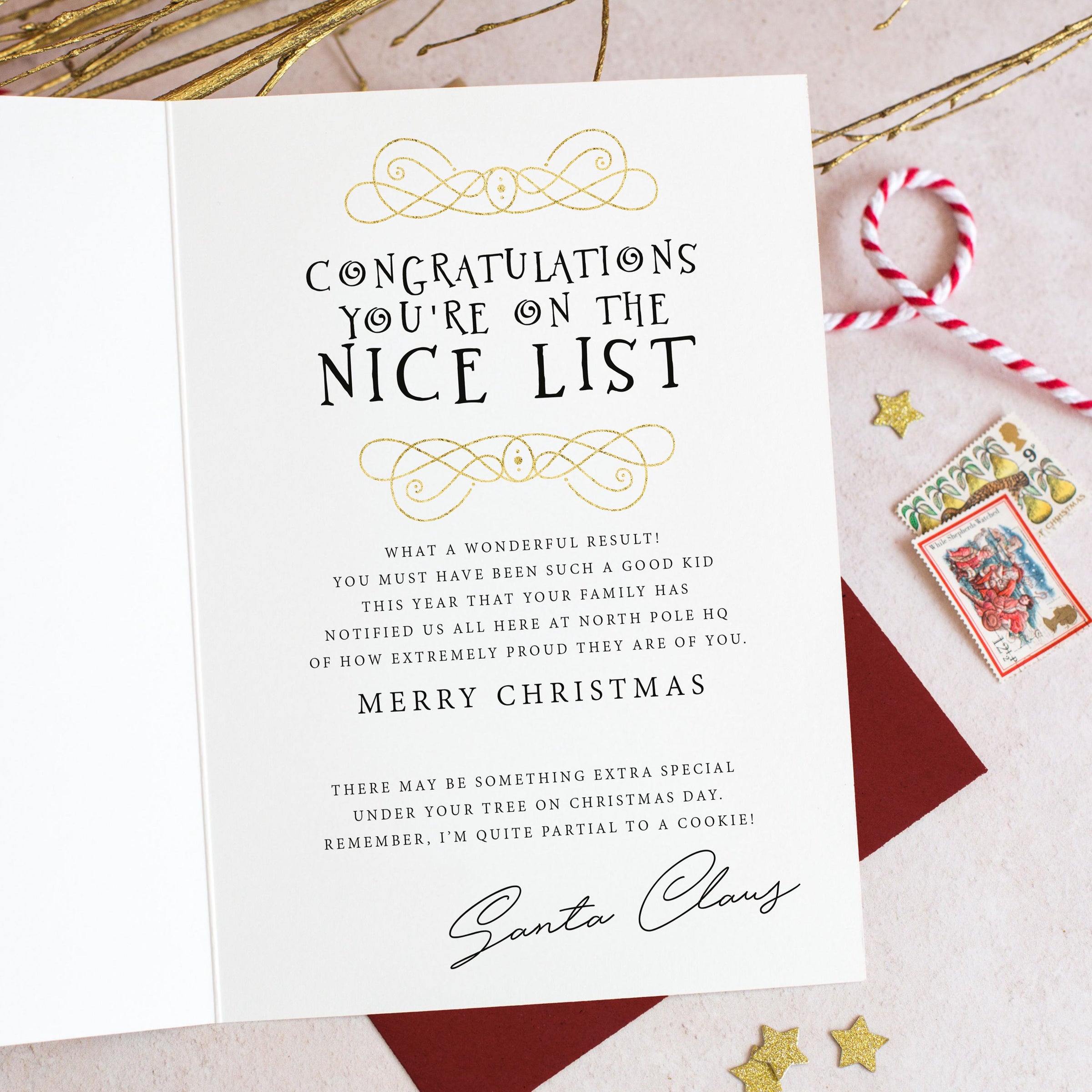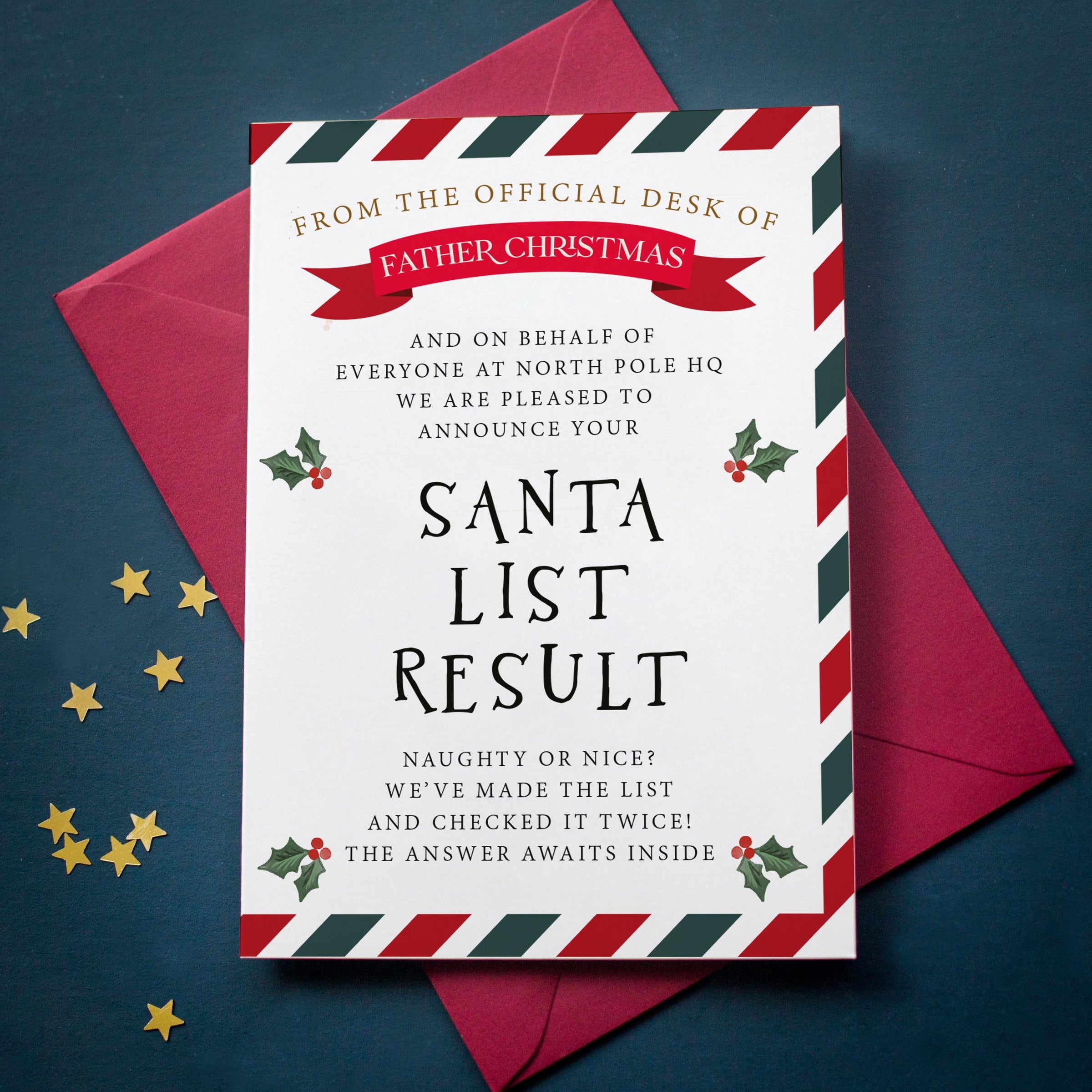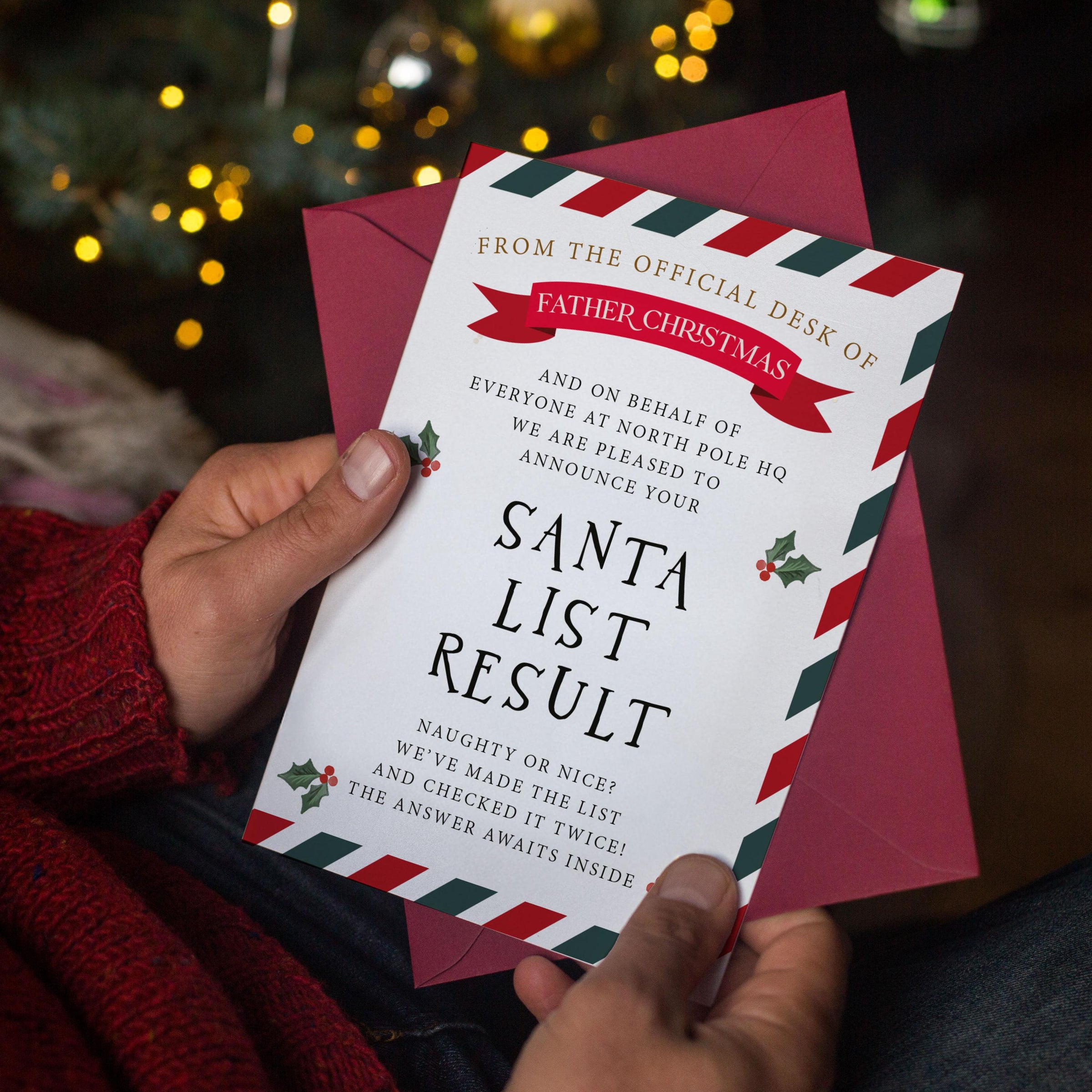 This Santa list result card combines enchanting design with heartfelt messaging, creating a magical moment that children will cherish year after year. Tested by hundreds of families, our cards receive glowing reviews for sparking joy and wonder during the holiday season. Whether used as a standalone gift or part of your Christmas Eve celebrations, this kids Christmas letter delivers genuine delight.